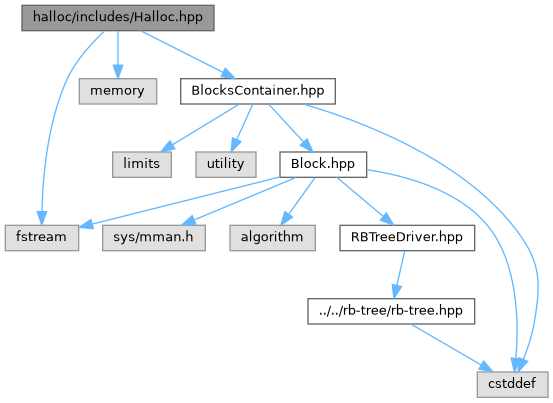 This file defines the main Halloc allocator class, which provides a type-safe, scalable memory allocator built on BlocksContainer. It uses Red-Black trees for O(log n) best-fit allocation and supports automatic block creation.